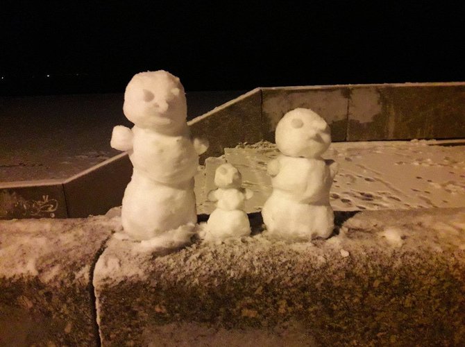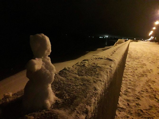 Приятно осознавать, что в Архангельске ещё остались позитивно мыслящие граждане. Несмотря на хмурую и мерзопакостную погоду, часть архангелогородцев всё же вышла на вечерний променад и слепила пару десятков снеговиков на Набережной Северной Двины.