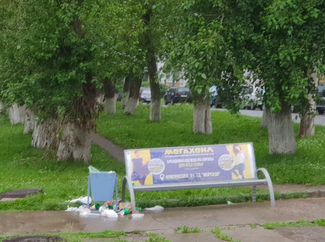 А это — славные архангельские урны. Они традиционно переполнены. Народ любовался природой акватории Двины.