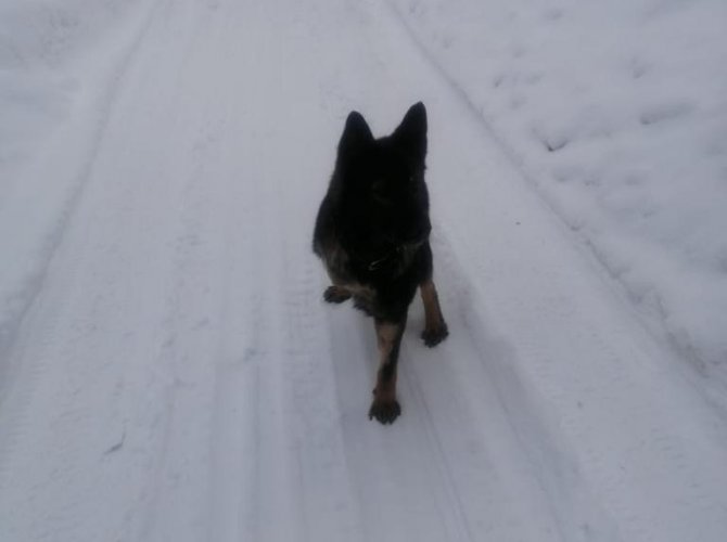 Убирает сторож снег, а турбазовские собаки — две овчарочки, мальчик и девочка (кстати, можно посмотреть по отзывам, что они крайне миролюбивые), мирно гуляют по территории.