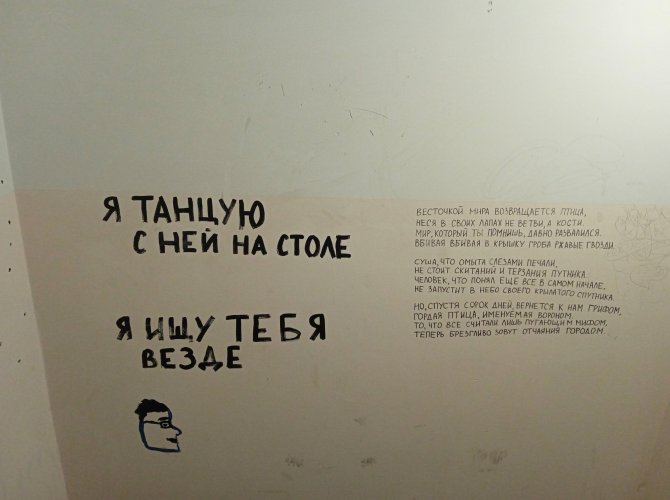 Молодые люди, живущие тут, поделились своей грустью: им очень не хватает в городе таких пространств, где царит свободное «уличное» искусство. Из-за идиотской борьбы коммунальщиков с граффитистами и изнуряющих бюрократических процедур, необходимых для согласования стрит-арта, отчаявшиеся художники вынуждены расписывать подъезды и губить свой талант.