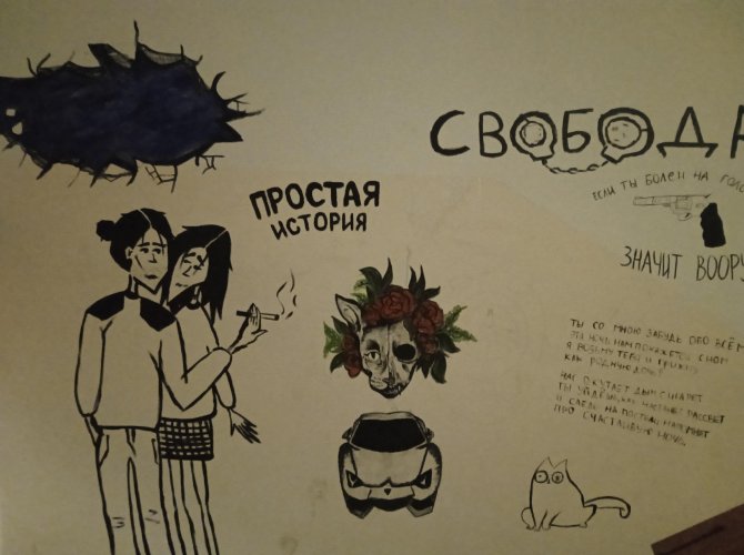 Многим жильцам подъезда, к сожалению, граффити на лестницах не по нраву. Как бы то ни было, эти рисунки имеют большую художественную ценность, чем побелка. Их безвестные авторы заслуживают внимания.