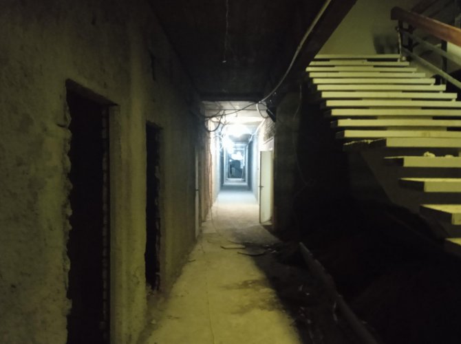 Двое подростков с телефонами и фонариками забирались внутрь по огромной куче песка. Двери в помещение, закрытое на ремонт и представляющее опасность для всех, кто не соблюдает технику безопасности на объекте, почему-то были настежь открыты.