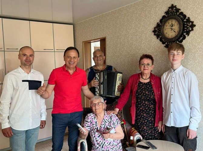 После каждого вручения для детей войны исполнялись песни под аккомпанемент баяна.