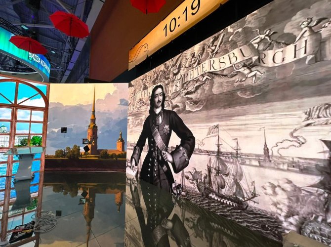 Экспозиция стенда города вдохновлена его уникальной историей, и раскрывает её в формате «Было-Стало-Будет». Мультимедийная программа устроена таким образом, что позволяет не только погрузиться в атмосферу современного Санкт-Петербурга, но и взглянуть на него «сквозь века», наблюдая за преобразованием города.