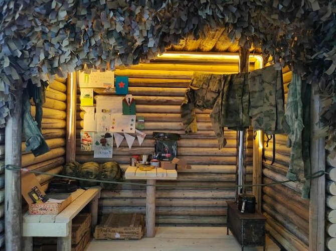 В выставочном пространстве также предусмотрен комплекс, где посетители смогут написать письма поддержки бойцам Российской армии, принять участие в плетении маскировочных сетей.