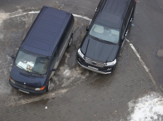 В нескольких метрах от нарушителей есть свободные парковочные места, причем некоторые даже чище, но чуть дальше от входа в соседний бизнес-центр, а это, как известно, непреодолимое препятствие для тех, кто привык передвигаться по городу на 4 колесах.