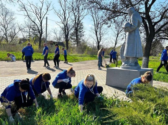 — В Луганске провели уборку на территории мемориального комплекса «Острая Могила». Здесь установлены памятники солдатам времен Гражданской и Великой Отечественной войны, ополченцам Донбасса и Героям СВО. В Мариуполе провели субботник на братской могиле, — рассказал председатель МГЕР Антон Демидов.