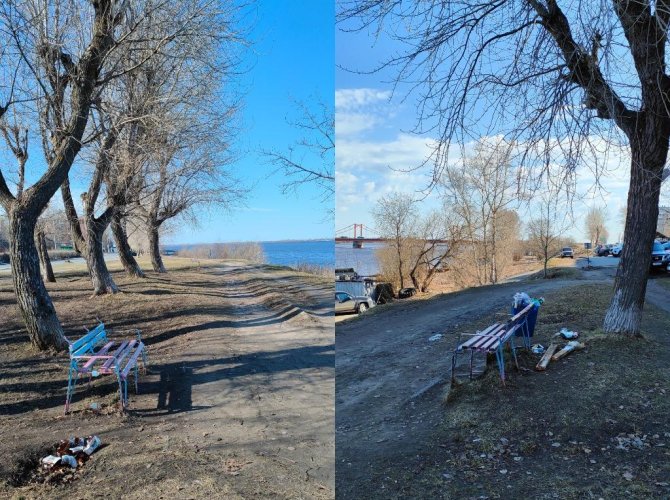 В этом месте расположены 6 скамеек. Урна сегодня, как передаёт корреспондент ИА «Эхо СЕВЕРА», мониторящий утренние улицы города, обнаружилась лишь возле одной скамейки. Понятное дело, что ёмкость, учитывая жаркие выходные и большое количество гуляющих северян и гостей Поморья, переполнена. Некоторые недобросовестные граждане даже стали складывать мусор в ямки у скамеек.