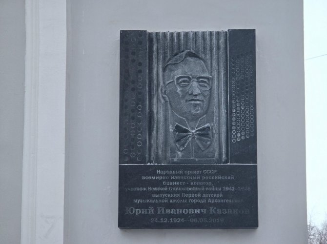 Первая детская музыкальная школа Архангельска носит имя одного из самых выдающихся её выпускников — баяниста Юрия Казакова, однако соответствующей таблички на стенах здания не было до сегодняшнего дня.