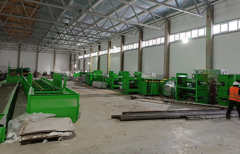 Параллельно специалисты продолжают монтаж основного элемента всего комплекса — линии мусоросортировки, по которой от одного этапа сортировки к другому будут перемещаться поступающие на объект отходы.
