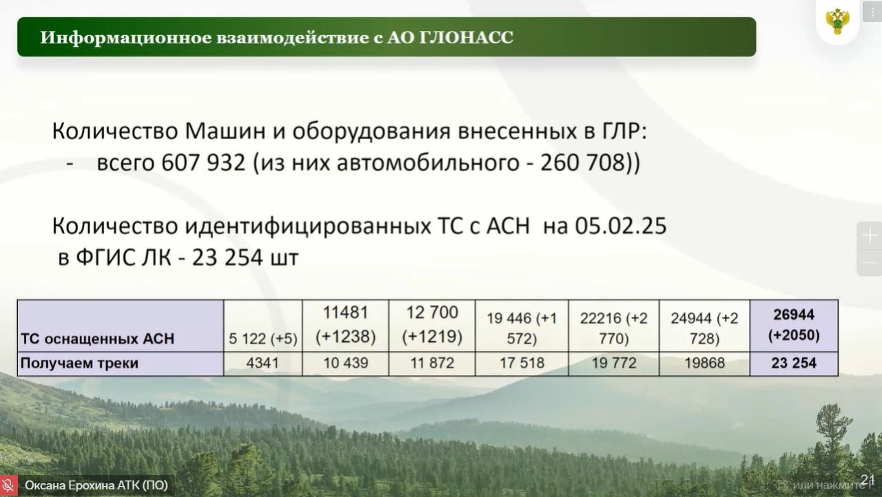 Второй слайд — это оснащение техникой ГЛОНАСС лесопользователей в стране: 23 тысячи из 260 — 10% получается.