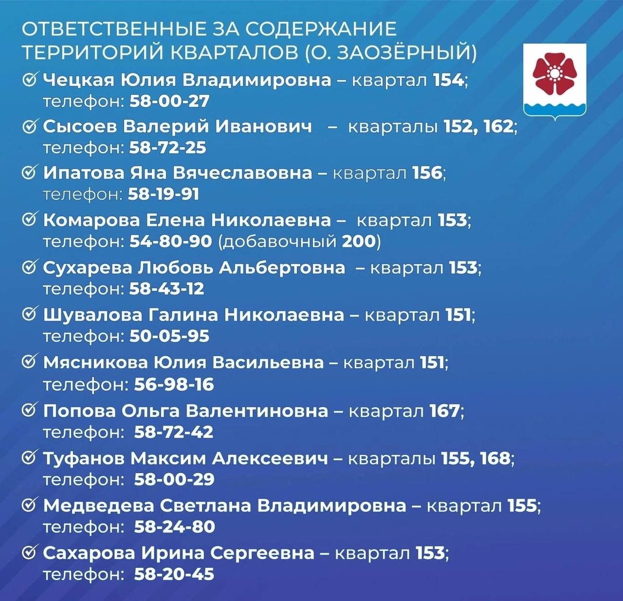 Арсентьев выложил список с именами ответственных за каждый квартал и телефонами, позвонив по которым северодвинцы смогут рассказать о проблемах.