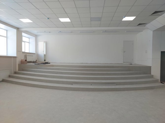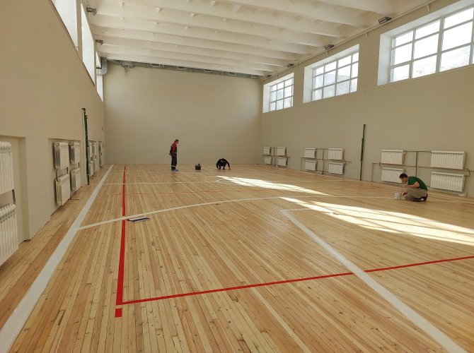 — Отличное решение применили для ремонта спортивного зала: паркетные полы восстановили, укрепили и уже покрывают лаком. Выглядит солидно! — отметил Морев.