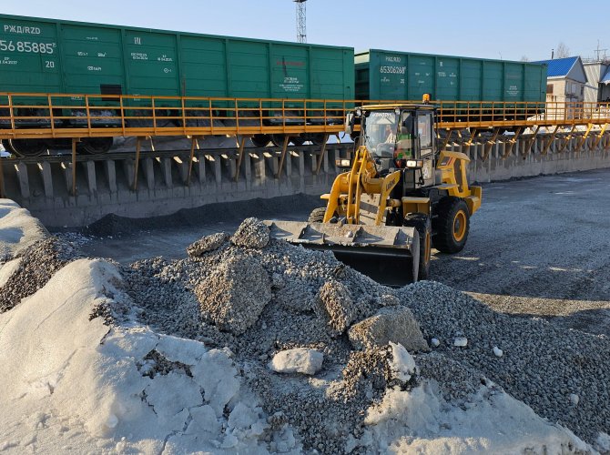 Железнодорожный тупик, состоящий теперь из нескольких «веток», уже представляет собой целое отдельное хозяйство — своеобразную связку путей, где стоят вагоны с запасами инертных материалов.