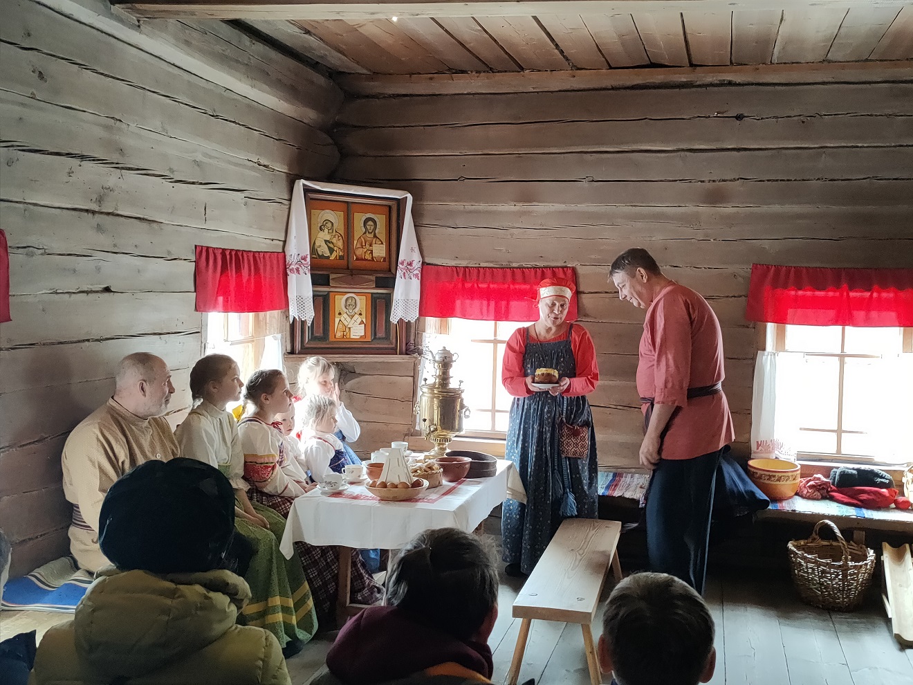 В избе дома Пухова посетители музея-заповедника увидят этнографические картинки «Чистый четверг» и «Пасхальная трапеза». Артисты фольклорно-этнографического театра «Новиця» также покажут обряды Чистого четверга «Окуривание вересом» и «Умывание с серебра», пасхальный обряд «Встреча Солнца» и вовлекут гостей праздника в поздравительные обходы деревенских дворов.