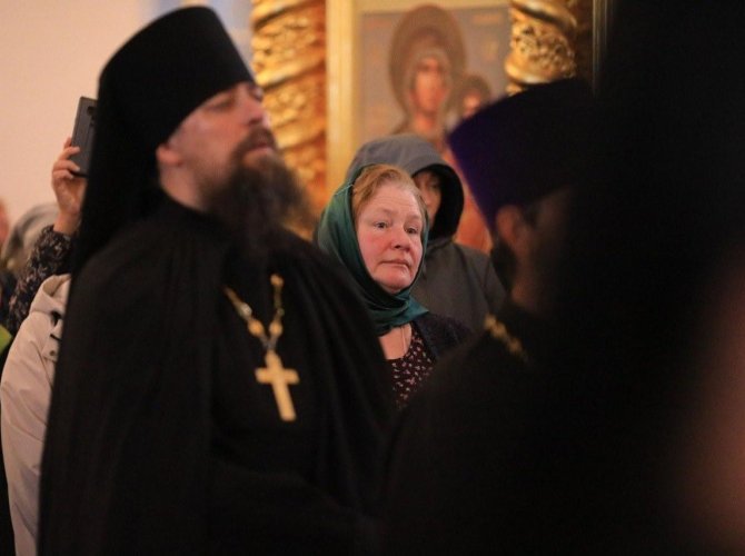 Визит Предстоятеля Русской Православной Церкви начался с посещения Свято-Троицкого Зосимо-Савватиевского собора, где Святейший Патриарх Кирилл совершил молитву и поклонился мощам преподобных Зосимы, Савватия и Германа Соловецких.