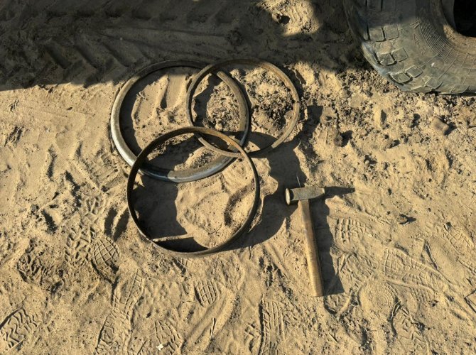 В ходе ремонта слесарь ударил кувалдой по замочному кольцу накачанного воздухом колеса прицепа трактора, в результате чего взорвалась воздушная камера шины, что привело к разлёту деталей механизма крепления колеса, одна из которых ударила мужчину по голове, в результате чего он получил тяжелые травмы, а после скончался.