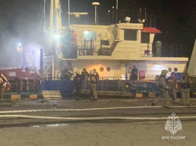 В ночь на пятницу произошёл пожар на судне «Пур-Наволок» у причала в Маймаксе.