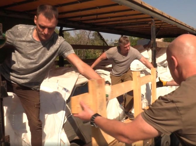 Небольшая пилорама развернута прямо в лесу недалеко от линии боевого соприкосновения. Здесь силами бойцов одной из частей делают столь необходимые доски и брус. Из данных материалов построен целый подземный город за считанные недели. В том числе из леса, который доставлен волонтерами из Архангельска. Сейчас здесь есть все необходимое, чтобы базировалось полнокровное подразделение.
