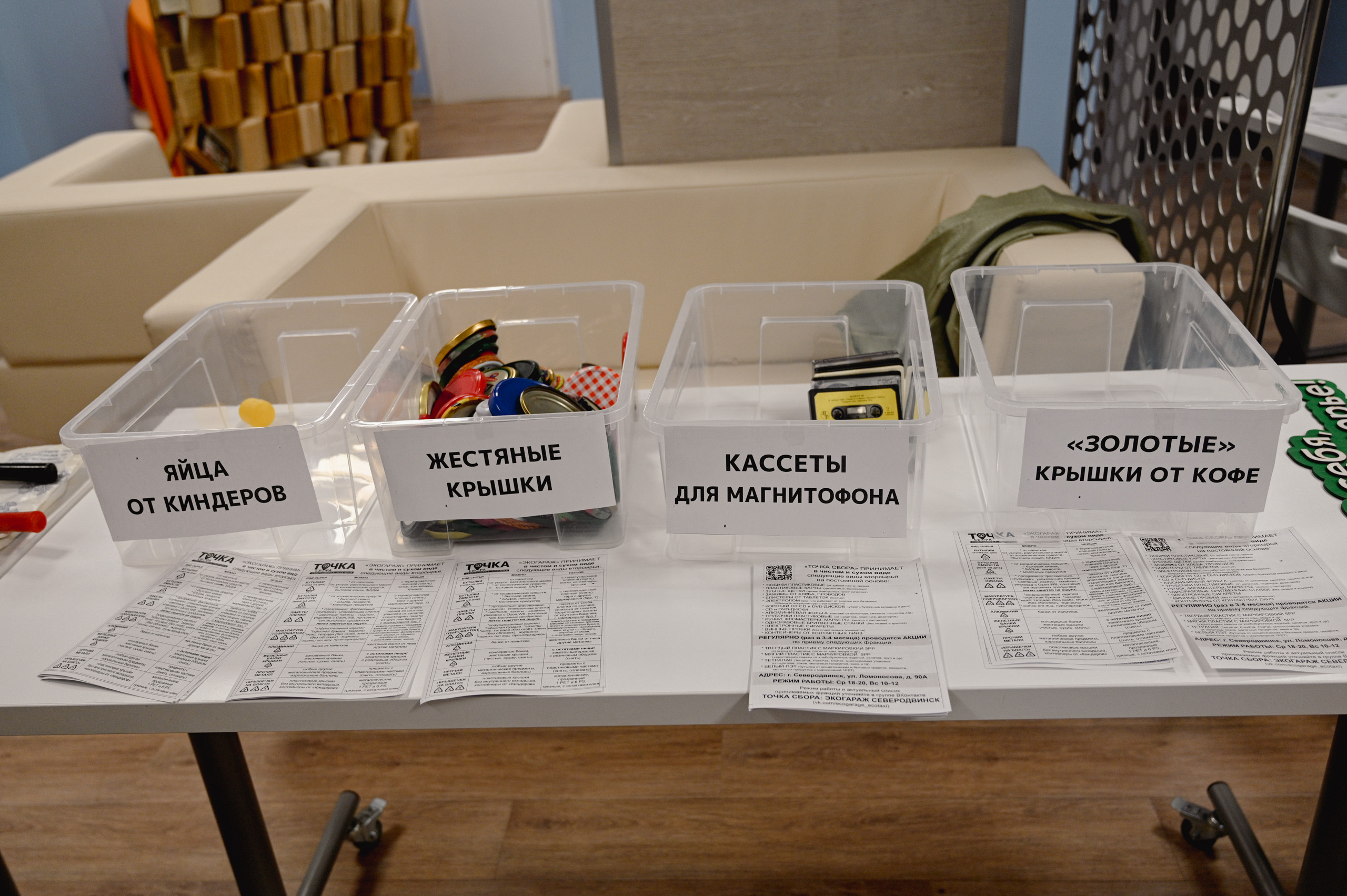 Одной из самых популярных площадок стал традиционный сбор вторсырья. Участники принесли на переработку аудиокассеты, ПЭТ-бутылки, «золотые» кофейные крышки и крышки от киндер-яиц. Главным же ресурсом стали металлические крышки, которые собрали на фестивале в количестве двух килограмм. Средства от их сдачи пойдут на благотворительный проект «Амбассадоры рек»: весной 2026 года на них будут закуплены мальки рыб для выпуска в реки Архангельской области.