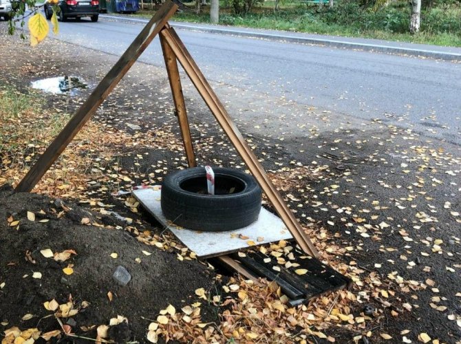 Напомним, что проблема открытых люков инженерных коммуникаций в столице Архангельской области так же не нова, как и проблема многочисленных разрытий, заброшенных вездесущими коммунальщиками. И поскольку освещаются дороги с тротуарами в городе (спасибо горадминистрации) очень плохо, прокуратура не успевает выдавать предписания по всем открытым люкам, прикрывают опасные места жители самостоятельно, подручными средствами, т. е. досками, покрышками и теми отходами, что валяются на улицах (опять спасибо горадминистрации за обилие «материалов»). Получается весьма креативно.