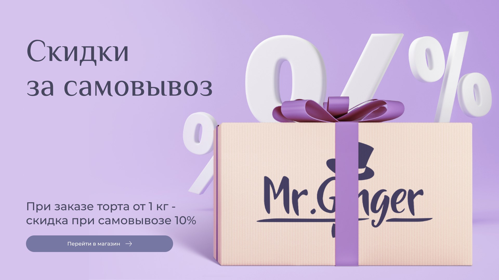Скидка 10% за самовывоз при заказе торта от 1 кг. в кондитерской Mr. GingerПартнерская программа