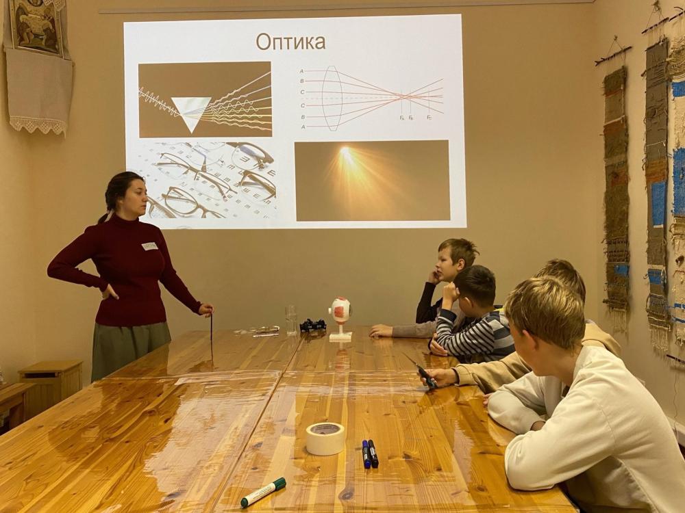 Ребята каждый день знакомились с новыми для них научными понятиями, соединяя естественно-научное знание с уже знакомыми им явлениями культуры, истории и природы Соловков. Так, например, основы механики постигали на примере строительства стен Соловецкого монастыря, оптику — вспоминая линзу маяка на Секирной горе, а ещё ребята узнали, почему мы видим северное сияние и как поморы могли своими руками сделать компас.