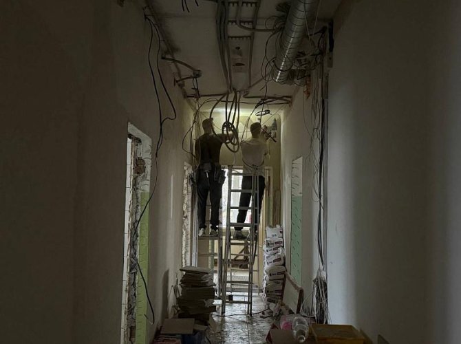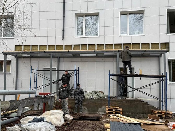 На сегодняшний день техническая готовность объекта составляет более 80%. Подрядчик завершает отделку помещений, ведет электромонтажные работы по устройству силовых кабельных линий, а также занимается ремонтом кровли, устройством крылец и монтажом вентиляции.