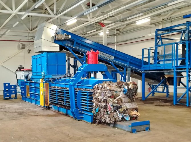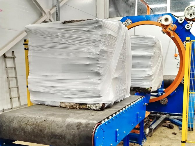 Остальное попадает на ленту. Полезные фракции (пластик, стекло, макулатура) отбирают вручную специалисты комплекса, а металлические отходы — автоматический магнитный сепаратор. Далее вторсырье спрессуют, упакуют и в период навигации отправят на заводы-переработчиков. Оставшиеся после сортировки «хвосты» также брикетируют — они уедут на полигон.