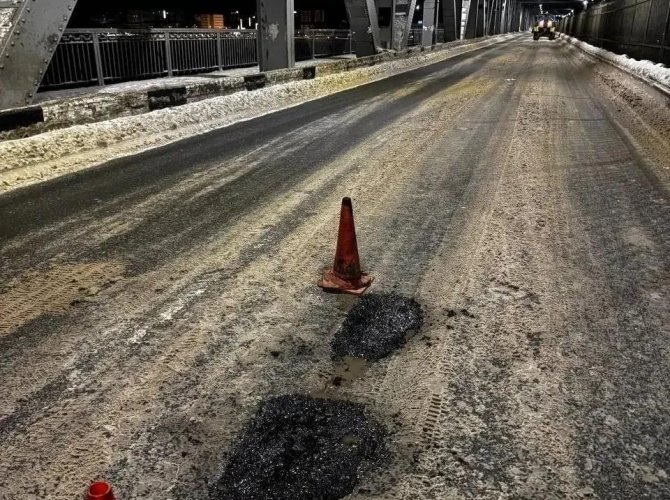 Так, по информации пресс-службы архгорадмина, сегодня ночью специалисты МУП «Городское благоустройство» провели ямочный ремонт на Северодвинском мосту. Для устранения дефектов дорожного покрытия использовали литой асфальт.