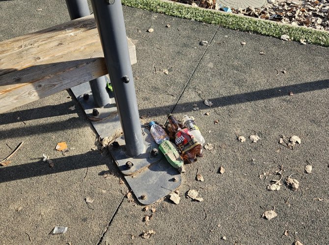 На фото ниже — ежедневный свинарник у площадки на территории «Труда». По вечерам дети там жрут вкусняшки и мусорят фантиками, а те, кто постарше — бухают.